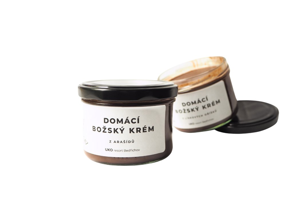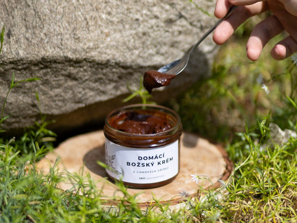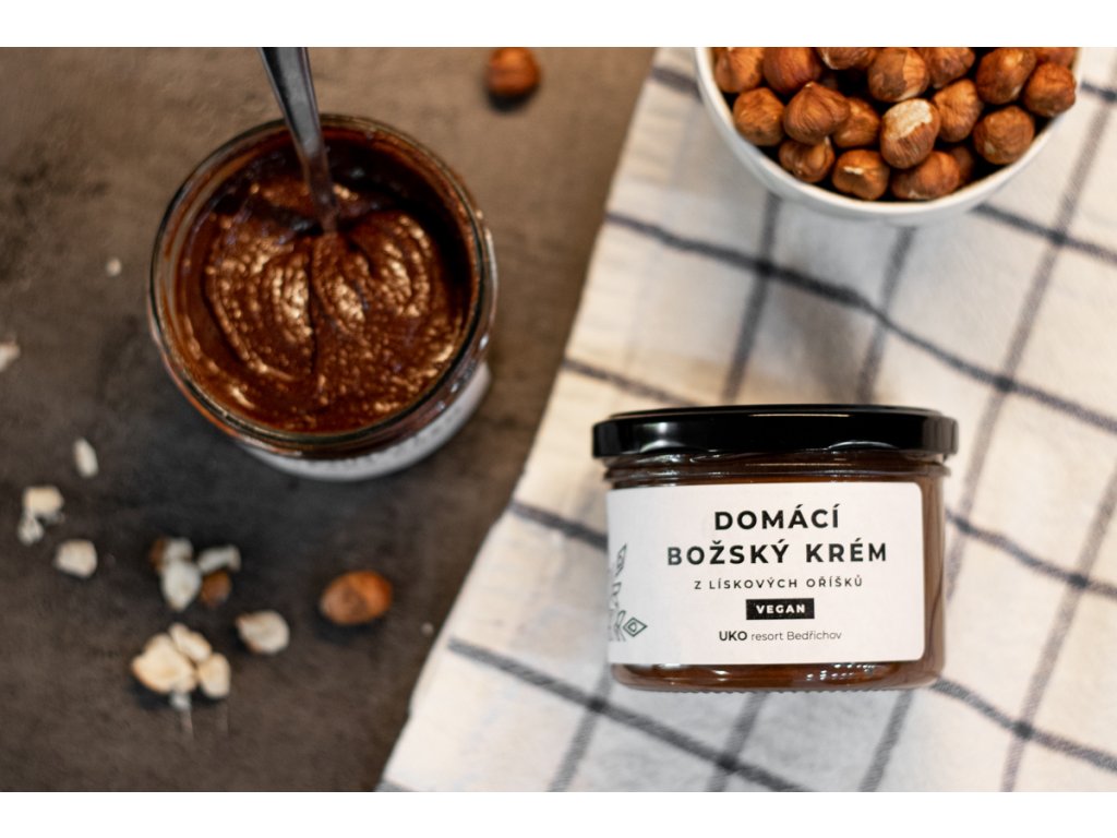 Složení: pražené lískové oříšky, kakao, farmářské máslo, čokoláda 70% (kakaová hmota, kakaové máslo, cukr, slunečnicový lecitin, přírodní vanilkové aroma), vanilka, himalájská sůl.