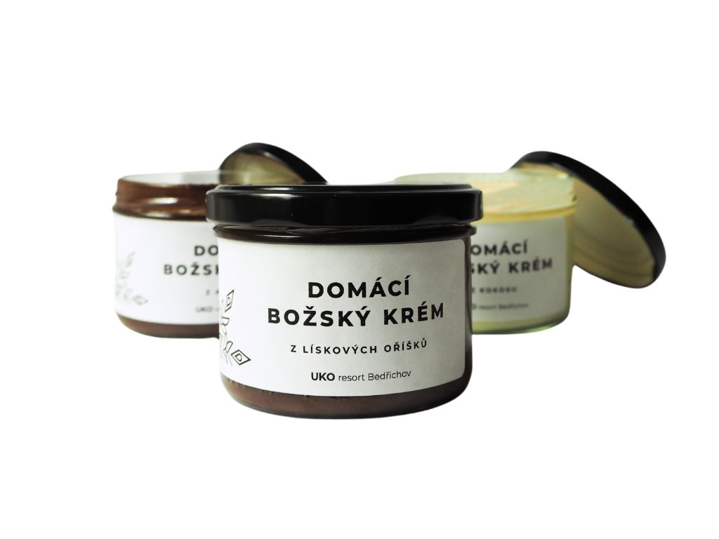 Složení: pražené lískové oříšky, kakao, kokosový olej, čokoláda 70% (kakaová hmota, kakaové máslo, cukr, slunečnicový lecitin, přírodní vanilkové aroma), vanilka, himalájská sůl.