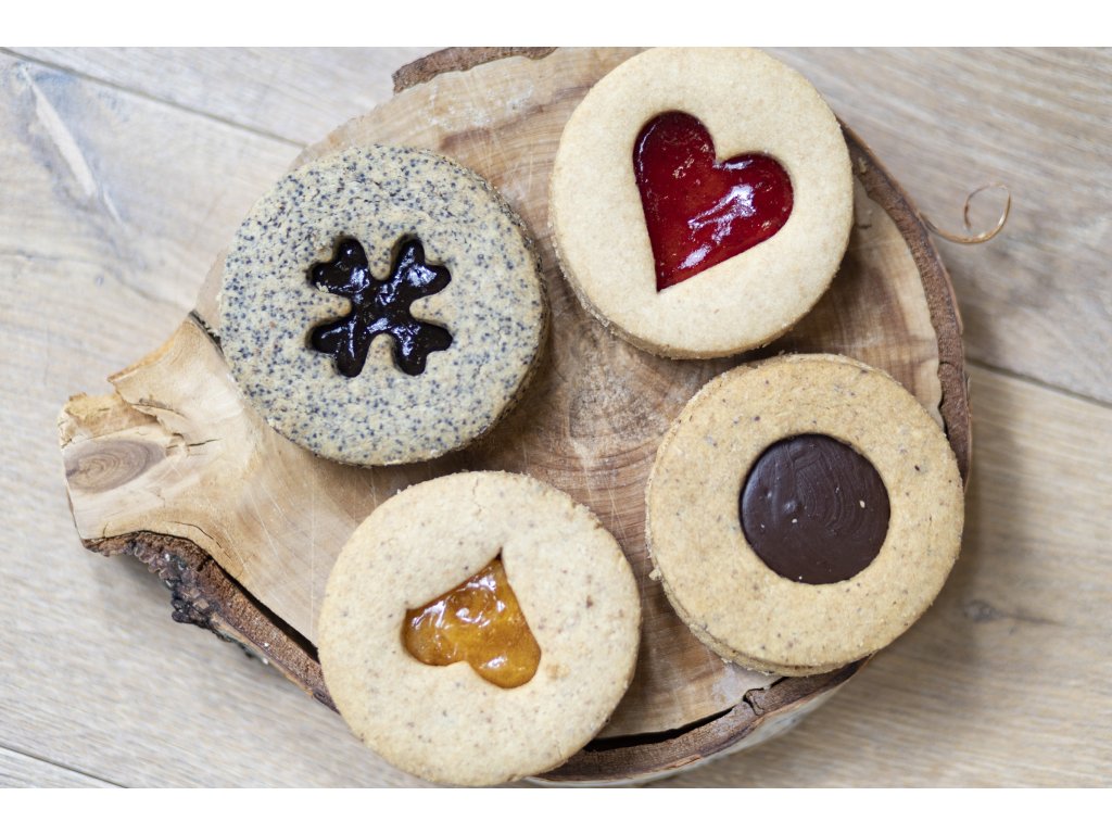 Složení: BIO špaldová mouka hladká, BIO špaldová mouka celozrnná, třtinový cukr, holandské kakao, farmářské máslo, kůra z BIO citronu, vanilka, himalájská sůl, domácí božský kokosový krém
