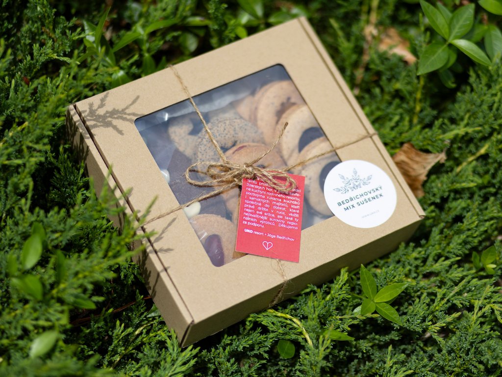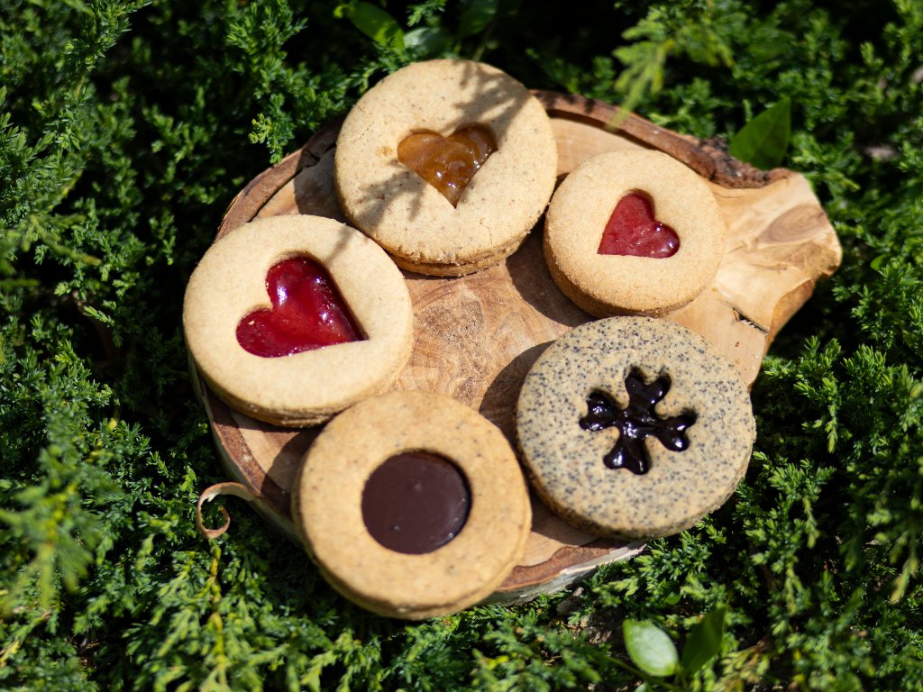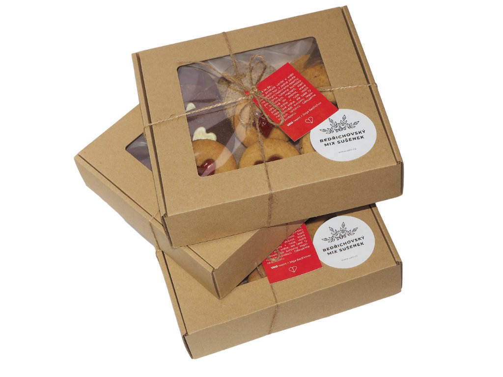 Složení: BIO špaldová mouka hladká, BIO špaldová mouka celozrnná, třtinový cukr, máslo, kůra z BIO citronu, himalájská sůlSušenky čokokokosové: strouhaný kokos, holandské kakao, domácí krém (kokosové máslo, kokosový tuk, bílá čokoláda)Sušenky mandlové: mleté mandle, vanilka, meruňková marmeládaSušenky oříškové: mleté lískové oříšky, domácí krém (lískové oříšky, čokoláda, máslo)